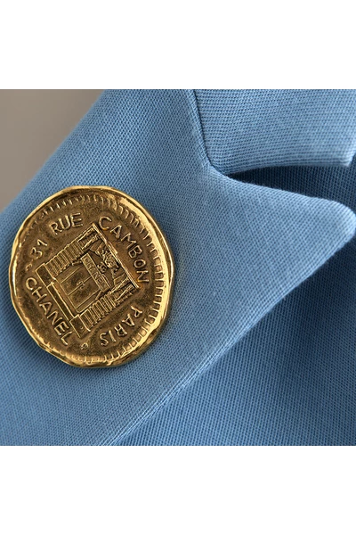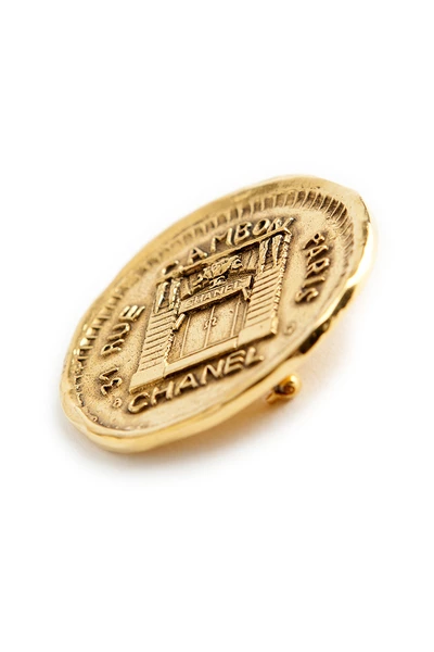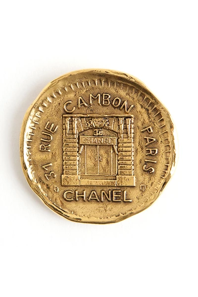 Authentieke en Vintage Chanel broche, uit de jaren 90. Verrijkte vergulde messing broche in een ronde vorm. In reliëf gemaakt met iconisch 3301 Rue Cambon Paris-logo. De broche is gestempeld met een echtheidsmerk. De pin op de achterkant is veilig met uitstekende spanning. Grootte: diameter 4 cm. Wordt geleverd met een merkloze juwelendoos. Onze producten zijn 100% echt en authentiek Chanel. In sommige gevallen kopen we merchandise van vertrouwde onafhankelijke leveranciers en niet rechtstreeks van de merkeigenaar. In alle gevallen staan we voor de authenticiteit van elk product dat op deze site wordt verkocht.