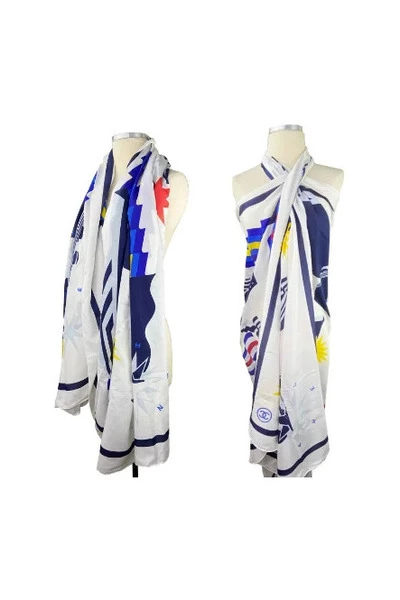 Chanel gloednieuwe la pausa cruiseschip ivoor blauw grote sjaal sjaal gemaakt in Italië 62% katoen% en 38% katoen wordt geleverd met originele stofzak en tag geschikt 76