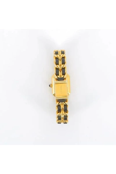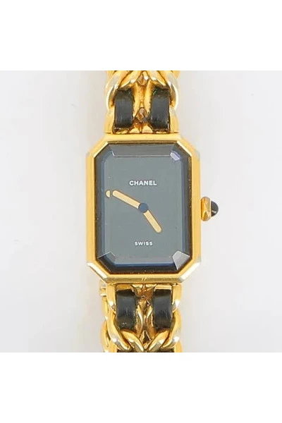 Chanel WatchFirst Modelbracelet in geel goud vergulde en zwart leathersapphire glasrectangulaire wijzerplaat 20 x 25 cmsize xlsome krassen op de metaalvery goede conditional zonder dekking of doos uitstekend. Een uitstekend item zal een paar keer zijn gedragen en zal in bijna ongerepte staat zijn omdat het buitengewoon goed is onderhouden. Kan lichte slijtage vertonen, zoals krassen of slijtage aan de randen van worden gebruikt, maar zal geen defecten hebben.