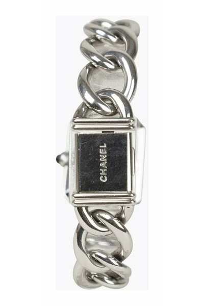 Chanel Première Chainte horloge XL- kwartsbeweging- Grootte 20 mm x 18 cm- Gladde ringblack-keten-linksarmband met scharnierende gespreide voorgelovige staat: zeer goede hairline krassen in het geval, bezel en armband. Kleine tekens op caseBack. Clean Crystal.Delivered Without Accessorieserial Number: V.C. 85902Watch Lengte: Ongeveer 18,5 cmplease Merk op dat de meerderheid van onze items vintage zijn en daarom verhalen te vertellen hebben tenzij anders vermeld. Kijk daarom naar foto`s, beschrijvingen en metingen die u het beste idee geven van het verhaal dat dit item te vertellen heeft.