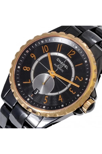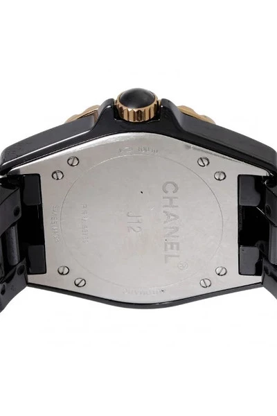Chanel J12 Ladies polshorloge, ref. H3838. Ca. 2010s. Keramiek/roségoud 18k. Automaatbeweging, werkend. Zeer goede staat, zichtbare tekenen van slijtage op ring en caseBack. Diameter ca. 37,5 mm zonder kroon, tot ca. 16,5 cm polsformaat. Goed, maar gebruikt. Een goed maar gebruikt item is gedragen en mogelijk gewassen, maar zal in goede staat zijn en goed worden verzorgd. Het item zal zichtbare slijtage hebben, maar de defecten zullen gering zijn. Deze moeten op foto`s worden genoemd en zichtbaar.
