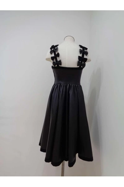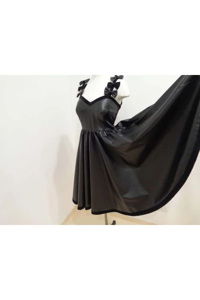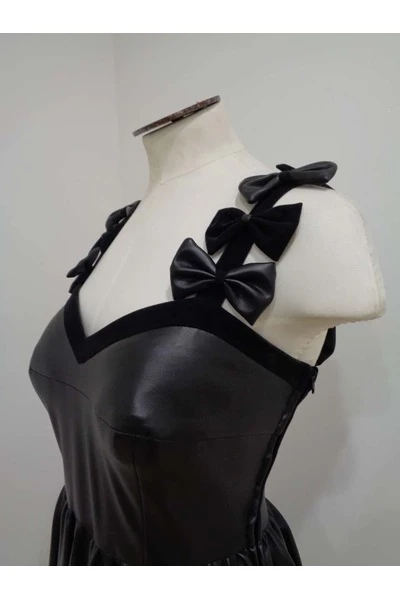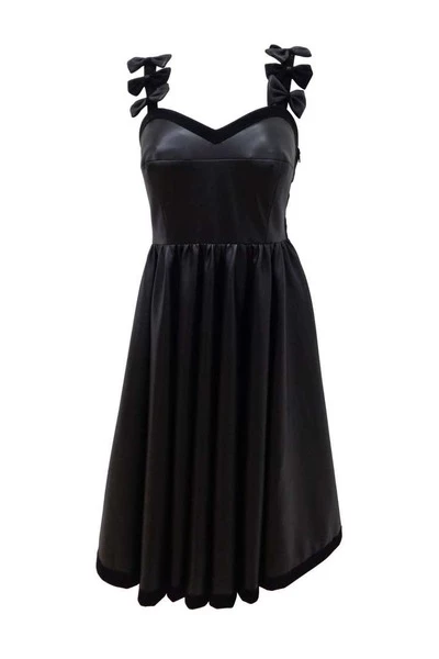 Chanel Pre-eigenaar jurken Black Chanel Zwart Leather Velvet Bows Jurk Unieke jurk van Chanel in 100% leer en fluwelen bogen volledig gemaakt in Frankrijk Maat 40