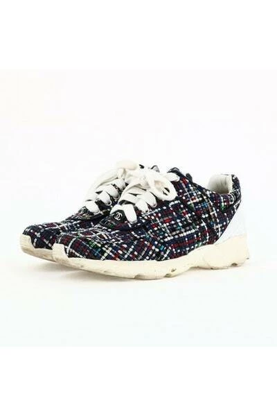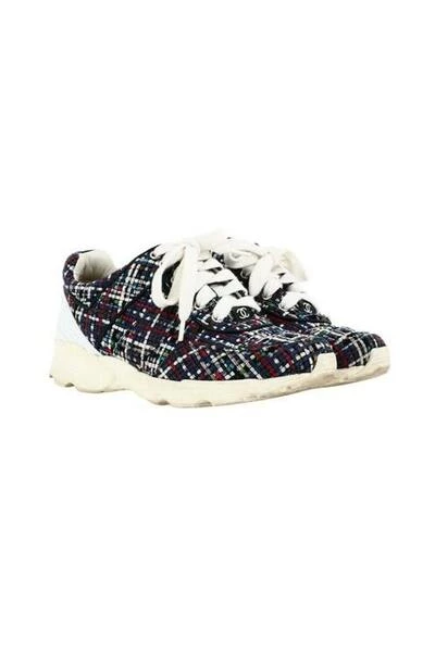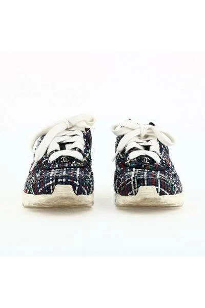 Chanel sneakers Veelkleurig tweed effect Leren hak Zilveren logo Maat 35.5 Veren zolen Zeer goede staat Verkocht zonder hoes of doos