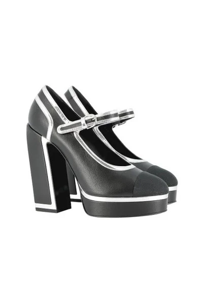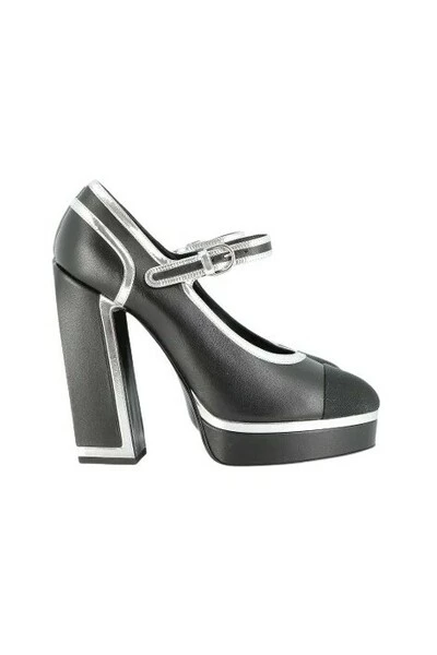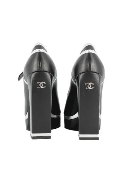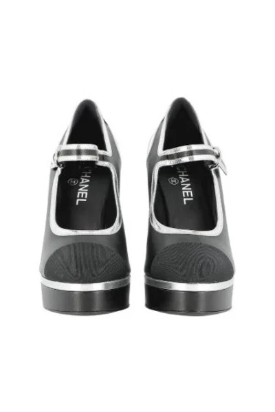 Chanel Pumpsmodel BabiesLeatherblack Silver Leather Details Silver metalen sieraden Black stof Tipsloop flangesheel Hoogte van 14 cm3 cm platformsize 40 Verkocht met stofzak, met uitstekend doos. Een uitstekend item zal een paar keer zijn gedragen en zal in bijna ongerepte staat zijn omdat het buitengewoon goed is onderhouden. Kan lichte slijtage vertonen, zoals krassen of slijtage aan de randen van worden gebruikt, maar zal geen defecten hebben.