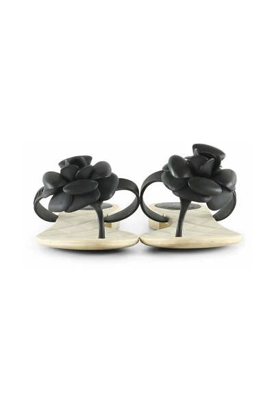 Deze Chanel -sandalen zijn gemaakt van wit en zwart rubber. Ze hebben bloemendetails op de vamps met het merklogo en gewatteerde rubber witte inlegzolen met het in elkaar grijpende CC -logo. De flats zijn in uitstekende staat, maar de zolen vertonen kleine vuilmarkeringen. Chanel zwart / wit rubber Camelia Thong Sandalen Kleur: Zwart Materiaal: Rubberen Conditie: Uitstekend Maat: EU37 Teken van slijtage: NO SKU: 195038 / RWS-482 / RWS-482 Product-ID: 195038