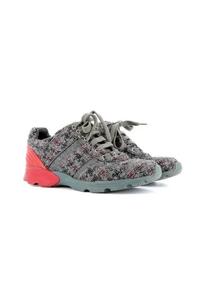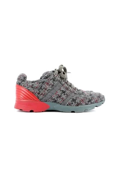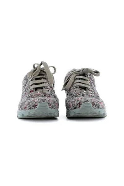 Sneakers Chanelgum Solegrey en Bourgondië Tweedcotton Lacesburgundy Leathersize 40,5 procent conditional Lold zonder stofzak of doos