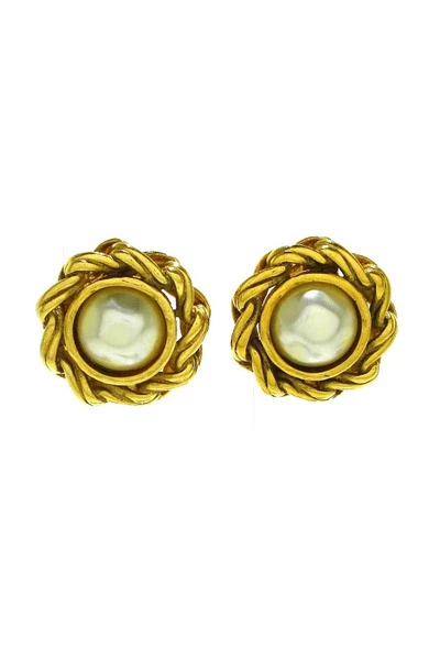 Merk: ChanelCategory: JewelrySubCategory: EarringsScolor: GoldMaterial: Hardware, Fake Pearlaccessories: Noned Design: Fake Pearl/Chainsize: Hoogte* Breedte: 1.1