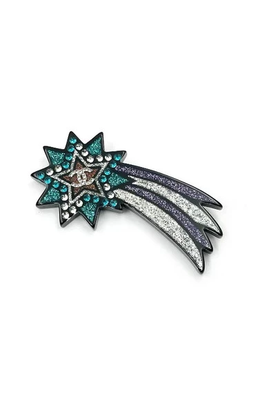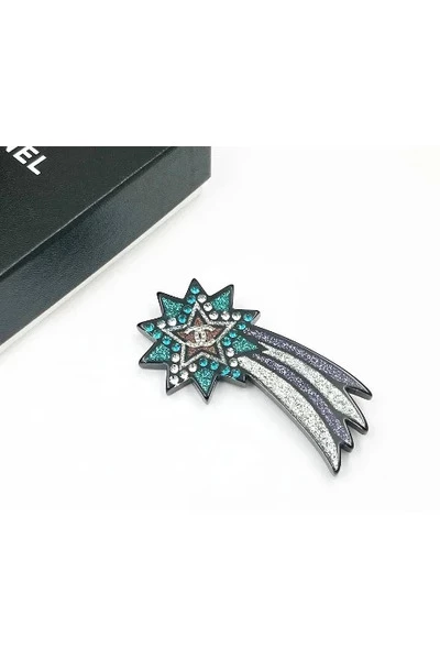 Chanel Silver CC Zwart Blue Glitter Shooting Star Large Broch gemarkeerd 17 gemaakt in Frankrijk wordt geleverd met de originele doos – het is ongeveer 3,25
