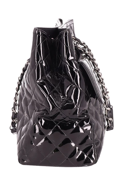 De tassen van Chanel zijn iconisch en opmerkelijk in de geschiedenis van de mode. Daarom is deze zwarte tas een koop die elk beetje van je uitgave waard is. Prachtig vervaardigd in Frankrijk van patentleer, het draagt ​​het kenmerkende quiltpatroon en het iconische CC-draaitaal op de voorkant van de voorkant. Het stuk heeft zilverkleurige hardware en mooie kettingschakels, zodat je het gemakkelijk kunt paraderen. Chanel voorzake draagtas in zwart octrooieleer Conditie: zeer goed teken van slijtage: sommige witte vlekken aan de onderkant en op de voeringkleur: zwart materiaal: octrooi leermeting: w 130 mm x l 390 mm x h 270 mm Sku: 158772 Grootte: één Maat
