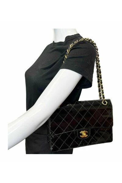 Chanel – Zeer goed – Vintage Patent gewatteerde kleptas – Zwart – Handtas Beschrijving Deze prachtige Chanel -handtas wordt geleverd met een certificaat van authenticiteit van Entrupy. De Gold CC Turnlock opent naar een lederen interieur en past comfortabel in een telefoon, portemonnee, toetsen en al uw essentie. Je zult deze klassieke flapzak nog vele jaren koesteren! Metingen Breedte: 10 in / 25,4 cm Hoogte: 6,5 in / 16,51 cm Diepte: 2,5 in / 6,35 cm RANT DRAAP: 16 in / 40,64 cm handgreep Drop: 9 in / 22,86 cm Details gemaakt in: Frankrijk * Kleur: Zwarte accessoires: Stof Tas, authenticiteit certificaat Materiaal: leerconditie: zeer goed voorafgaande eigendom. BUITEN KRACHTEN, slagen op afwerking, hoeken en interieur. Patina slijtage op turn lock hardware. 10889-001 Chanel Chanel – Vintage Patent gewatteerde flapzak Kleur: Zwart Materiaal: Lederen Conditie: Zeer goede maat: One Size Sign of Wear: No SKU: 186543 Afmetingen: Breedte: 10 mm, Hoogte: 6,5 mm