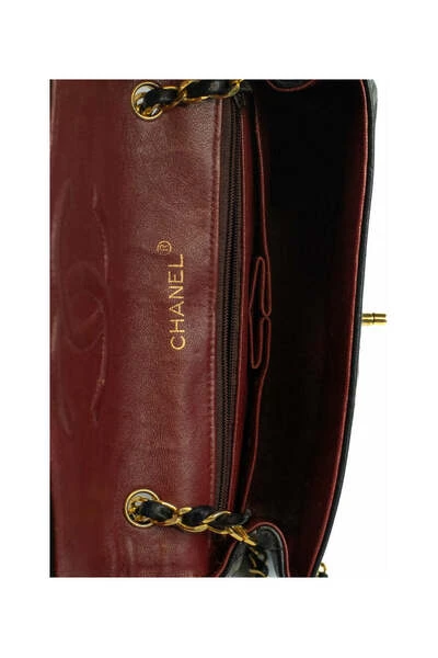 Vintage zwarte lederen tas. Interieur in bordeauxig leer. Gouden metalen lift. In zeer goede staat: tas gerestaureerd door een professionele, leer gemarkeerd, licht beschadigde interieurcodereeks: 391326 Afmetingen Breedte: 21 cm, hoogte: 14 cm, diepte: 6 cm, schouderriem: 100 cm accessoires geen Sku BR675-207-59