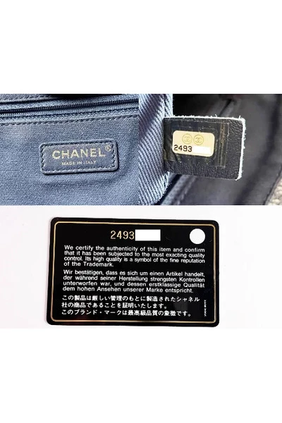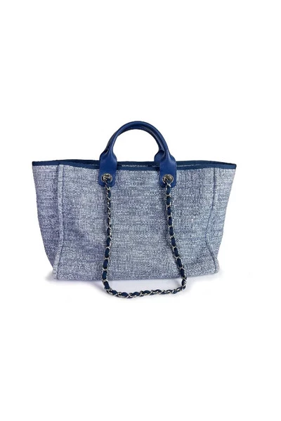 Chanel Blue Doek Blauw Leather Deauville Grote Tote Bag 2493 XXXX Made in Italië Wordt geleverd met de Control Number Card zoals te zien op Rihanna en Miranda Kerr -It is ongeveer 14,75