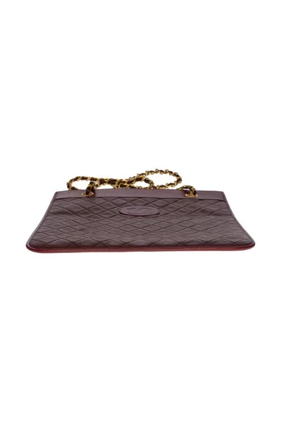 Superb Chanel Bag Koppeling platte caba`s in bordeauxige gewatteerde lamskijn, gouden metalen bekleding, een gouden metalen kettinghandgreep verweven met bordeauxig leer voor een hand en schoudergewerkt binnenvoering in zeeleer, een vergulde pocketsignatuur: Chanel®Made in Frankrijk: 1988 / 1991dimsions: 30 x 28 x 0,5 cm (12 x 11 x 0,2 inch) kettinglengte: 40 cm (15,5 inch) Referentie: 100504packaging: hologram: ja map van authenticiteit: ja dustbag: nobox: nogenerale toestand: 6,5/10in goede vintage conditie ondanks markeringen van gebruik op leer en bekleding bovendien: mogelijkheid van certificering van authenticiteit door een gerechtelijke expert en aan het hof van beroep van Parijs goed, maar gebruikt. Een goed maar gebruikt item is gedragen en mogelijk gewassen, maar zal in goede staat zijn en goed worden verzorgd. Het item zal zichtbare slijtage hebben, maar de defecten zullen gering zijn. Deze moeten op foto`s worden genoemd en zichtbaar.