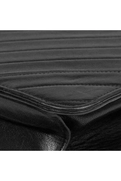 Vintage zwarte lederen tas. Interieur in Bourgondië -stof. Gouden metalen lift. In goede staat: enigszins gemarkeerd leer, strepen op de gesp, enigszins beschadigde hoeken serie code: nvt afmetingen breedte: 23 cm, hoogte: 15 cm, diepte: 3 cm, riem: 85 cm accessoires no Sku BR675-207-316