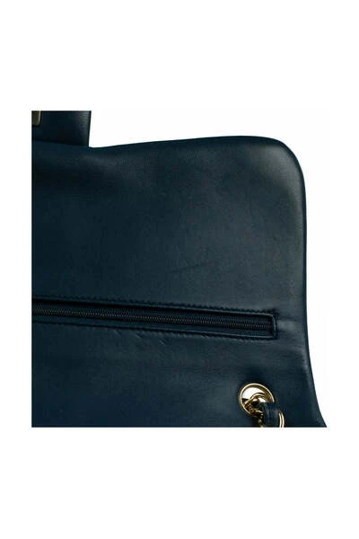 Blauwe lederen jumbo -tas. Interieur in blauwe stof. Gouden metalen lift. In zeer goede staat: licht beschadigde hoeken, licht gemarkeerd leer, enigszins beschadigde interieurcodereeks: 23502669 Afmetingen Breedte: 30 cm, Hoogte: 20 cm, Diepte: 10 cm, schouderband: 120 cm Accessoires No SKU BR675-207-300