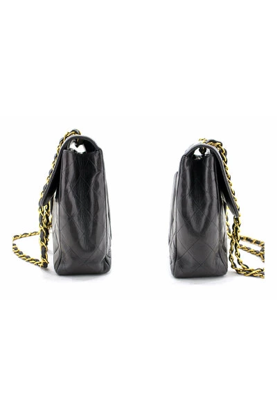 Een authentieke CHANEL Jumbo 11 Large Chain Shoulder Bag Flap Black gemaakt van zwart Lambskin Gold. De kleur is zwart. Het materiaal aan de buitenkant is leer. Het patroon is effen. Dit item is vintage / klassiek. Het jaar van fabricage zou 1994-1996 zijn Voorwaarden ; Beoordelingen Buitenmateriaal: Lamsleer Kleur: Zwart Sluiting: Draaislot Hardware en ketting: Goudkleurig Gemaakt in Frankrijk Seriesticker: Bijgevoegd Serienummer: VERBORGEN OM VEILIGHEIDSREDEN Wordt geleverd met: Geen Buitenkant: 7 van 10 – Mooie staat met normaal gebruikssporen. Lichte krassen. Rimpels. Vorm verloren. Binnenkant: 8 van 10 – Uitstekende staat met minimale gebruikssporen. Lichte krassen. Zeer schoon. Geen plakkerigheid of peeling. Band en hardware: 7 van 10 – Zeer mooie staat met normale gebruikssporen Afmetingen ca. H8 x B11,5 x D3,1 (H20,5 x B29,2 x D8 cm) Ca. bandverlies bij dubbele ketting: 35,5 cm. Geschatte bandverlies bij enkele ketting: 65 cm Over Geur: Schimmel: NEE / Parfum: NEE / Sigaret: NEE (De geur wordt door ons beoordeeld en verschillen per persoon. Gelieve af te zien van de aankoop als u gevoelig bent voor geur.) De etalagepop kan kleiner zijn dan u. Ze draagt kleding in maat US 6. De kleding, mannequin en iPhone zijn niet inbegrepen. We plaatsen een veiligheidslabel op het artikel om ervoor te zorgen dat het artikel na verzending niet wordt gedragen of niet wordt vervangen door een andere tas. We zullen de retourzending niet accepteren als je onze tag van het artikel verwijdert. 100% Authentiek gegarandeerd of geld terug. Artikelnummer:f35