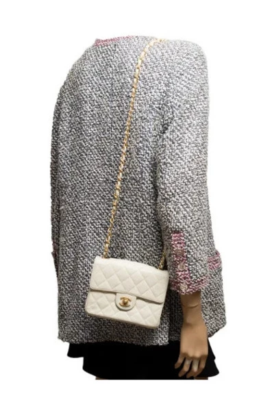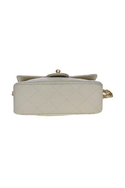Heerlijke Chanel Mini Tijdloze handtas in gebroken witte gewatteerde lambskine, gouden metalen bekleding, een gouden metalen kettinghandgreep verweven met gebroken wit leer voor schouder- en schoudersteunbuckle op de achterkant van de bagclosure door flap, gesp gemarkeerd CC Goldsingle Flapd Inner-voering in off off off off off off off off off off off offer -wit leer, 1 ritspocket in stof, een leer aangelegde zakken: