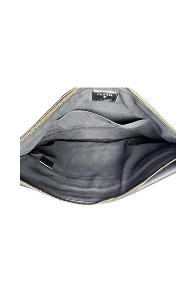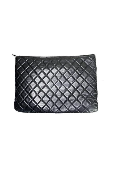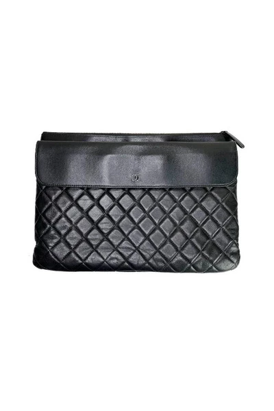 Chanel zwart lederen flap gewatteerd grote koppeling 2588xxxx gemaakt in Italië -geschikt 13.5