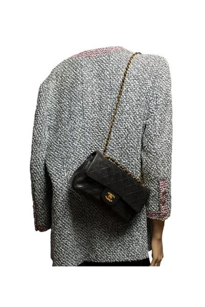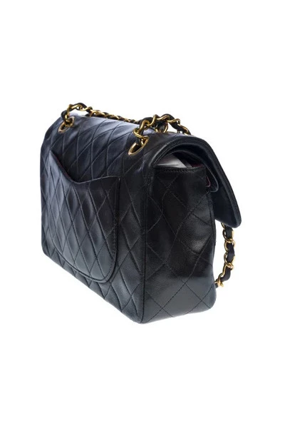 De felbegeerde Chanel Tijdloze tas 23 cm met dubbele flap in zwart gewatteerde lamsvil, gouden metalen bekleding, gouden metalen ketting verweven met zwart leer voor schouder- en schouderstroppoche aan de achterkant van de bagclosure door flap, gesp gemarkeerd CC Golddouble Flapzip op onderste flapinterior wand in Bourgondisch leer, 1 dubbele pocket vergulde, 1 overstappen naar lippenstiftsignatuur: Chanel gemaakt in Frankrijk Datum: 1994/sfeer 1996Dimensions: 23 x 14 x 6 cm (9,05 x 5,5 x 2,4 inch) kettinglengte: 43 cm (16,9 inch) Referentie: 100417packaginghologram: JACARD VAN AUTHENTICITEIT: NONDUSTBABE: NOBOX: Nogenerale toestand: 6.5/10in Zeer goede vintage staat Ondanks gebruik op leer en trimoption Bovendien: Certificering van authenticiteit door een gerechtelijke expert en bij het Parijse Hof van Beroep goed, maar gebruikt. Een goed maar gebruikt item is gedragen en mogelijk gewassen, maar zal in goede staat zijn en goed worden verzorgd. Het item zal zichtbare slijtage hebben, maar de defecten zullen gering zijn. Deze moeten op foto`s worden genoemd en zichtbaar.