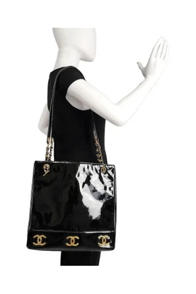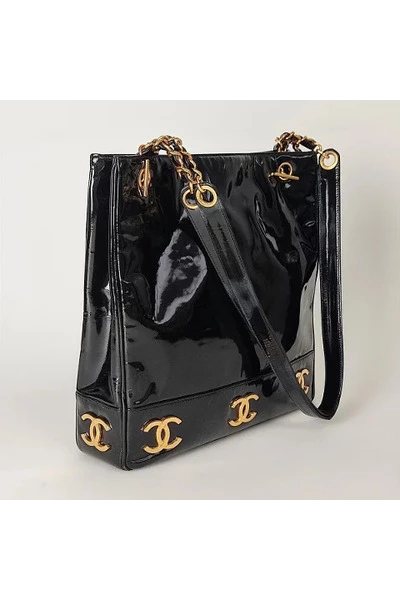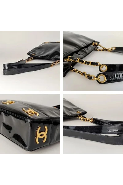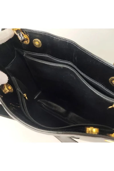 SKU: 2532/B/521 Merk: Chanel gemaakt in: Italië Beschrijving: Zwart Varnished lederen tas, draagtasmodel. Lange handgrepen versierd met gouden ketting. Dubbele C in vergulde metaal aan de onderkant. Uitgerust met een grote voorzak en twee interne zakken met ritssluiting. Het serienummer is niet langer leesbaar, maar de sticker is nog steeds zichtbaar. De algemene toestand is erg goed, maar de handgrepen hebben sporen van dekking van de verf die over het algemeen niet erg zichtbaar zijn. Metalen onderdelen behouden gouden plating heel goed. Kleur: Zwart materiaal: geschilderde leermetingen: lengte 31 cm, hoogte 32 cm, diepte 7 cm, handgrepen 37 cm voorwaarden: goed goed, maar gebruikt. Een goed maar gebruikt item is gedragen en mogelijk gewassen, maar zal in goede staat zijn en goed worden verzorgd. Het item zal zichtbare slijtage hebben, maar de defecten zullen gering zijn. Deze moeten op foto`s worden genoemd en zichtbaar.