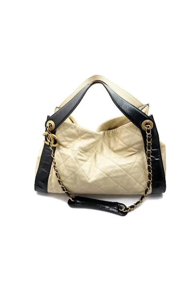 Chanel Ivory Black Leather Hand Schoudertas 1602xxxx (2012) Made in Italy wordt geleverd met originele stofzak en bedieningsnummerkaart -geschikt 6