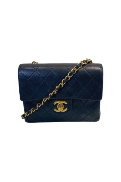 Chanel Mini Square Flap Bag in donkerblauwe lamskijnleer met goudkleurige hardware. De tas opent met het in elkaar grijpende CC -slot. De tas heeft een slip-in zak aan de achterkant. Het hoofdcompartiment heeft één slip-in zak en één ritszak. Deze vintage enkele flapzak kan op de schouder of als crossbody -tas worden gedragen. Het is een tijdloze en echt iconische tas met geweldige details, perfect voor dagelijks gebruik. De algehele staat van het item is goed, gezien enkele kleine tekenen van gebruik in de hoeken. Dit item is te vinden in onze winkel in Nieuwe Spiegelstraat 27 in Amsterdam of kan rechtstreeks worden gekocht via onze webshop. Riemlengte: 113 cm uitstekend. Een uitstekend item zal een paar keer zijn gedragen en zal in bijna ongerepte staat zijn omdat het buitengewoon goed is onderhouden. Kan lichte slijtage vertonen, zoals krassen of slijtage aan de randen van worden gebruikt, maar zal geen defecten hebben.