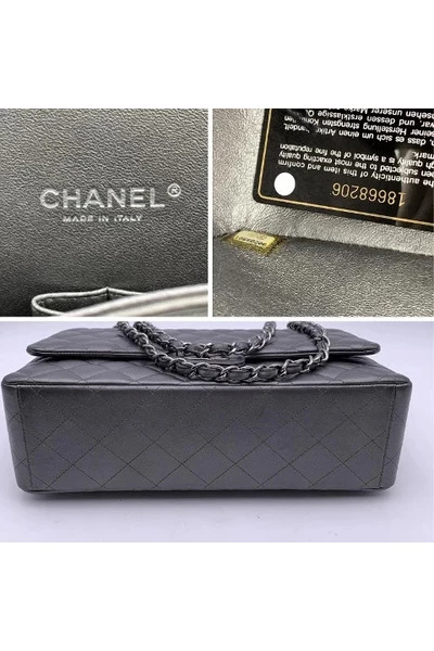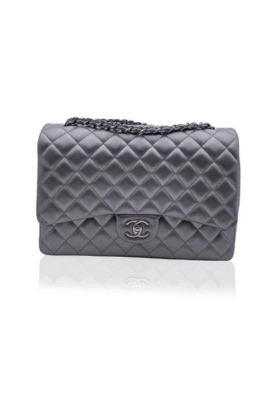 Chanel ; Maxi Tijdloze klassieke gewatteerde dubbele flap 2.55 tas. Grijs metaalachtig gewatteerd leer. Zilveren metalen hardware. Periode/ERA: 2013/2014. Het beschikt over dubbele cc Draai de sluiting van de slot en het interieur met dubbele flap. Met elkaar verweven ketting/lederen band; Kan op de schouder worden gedragen met dubbele riem of verlengen om te dragen met één enkele riem. Beschikt over achterste zakzak aan de achterkant. Grijs metaalachtig leer bekleed interieur met 2 muurzakken en 1 ritszak op de omgekeerde van de flap. Een elegant en tijdloos stuk. Chanel – gemaakt in Italië Binnen in reliëf. Chanel -logo gestikt op de omgekeerde van de binnenste klep, authenticiteit hologramsticker binnenin. Details Materiaal: Lederen Kleur: Grijs Model: Timeless Classic 2.55 Dubbele flap – Maxi Geslacht: Vrouwen Land van productie: Italië Maat: Grote stijl: Schoudertas Sluiting: Turn Lock Patroon: vaste voering Materiaal: lederen stofzak? Geen doos? Ja Sleutels? Geen voorwaarde A – Uitstekende zachtjes gebruikt. Minimale krassen op leer vanwege normaal gebruik (vooral aan de achterkant). Metingen Tas Hoogte: 9 inch – 22,8 cm Zakken Lengte: 13 inch – 33 cm Zakken Diepte: 4 inch – 10,16 cm Riem druppel: 18 inch – 45,72 cm Handgreep Drop: – Uitstekend. Een uitstekend item zal een paar keer zijn gedragen en zal in bijna ongerepte staat zijn omdat het buitengewoon goed is onderhouden. Kan lichte slijtage vertonen, zoals krassen of slijtage aan de randen van worden gebruikt, maar zal geen defecten hebben.