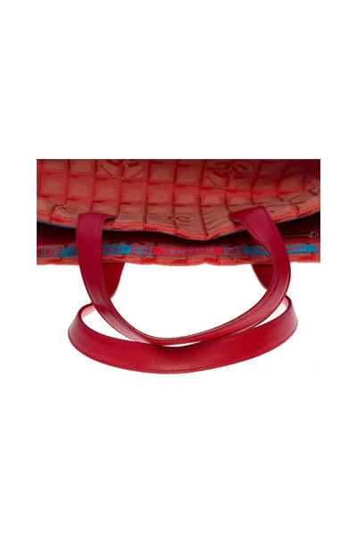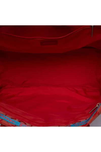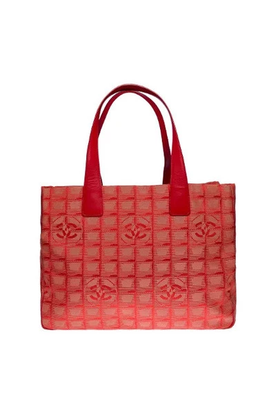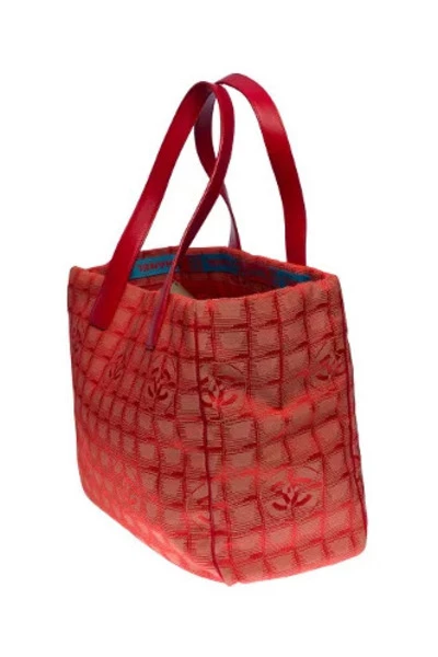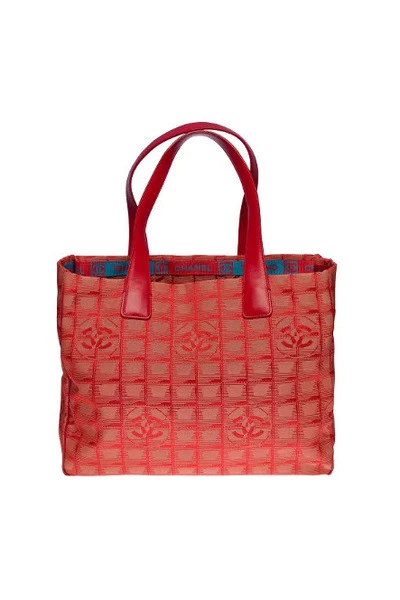 Zeer mooie Chanel Nieuwe Travel Line Tote Bag in Red Nylon, Matte Silver Metal Trim, Two Red Leather Handles waardoor een hand- en schouderblauwe en rode band is gemarkeerd