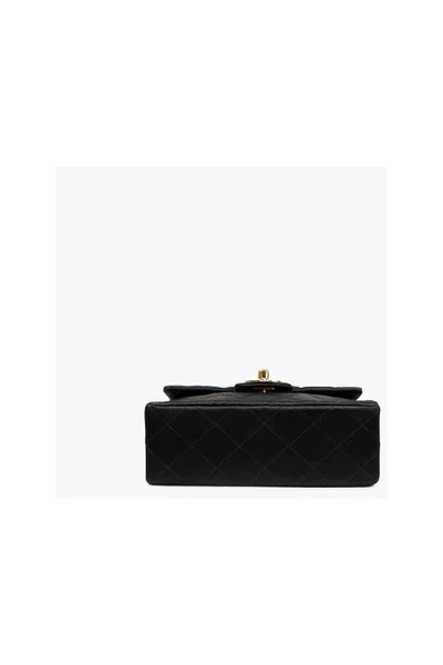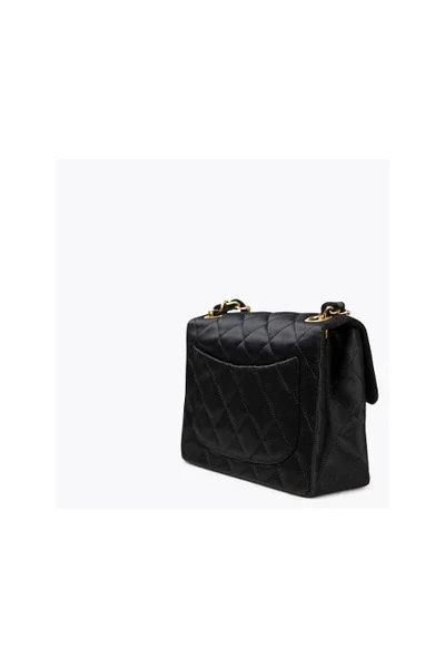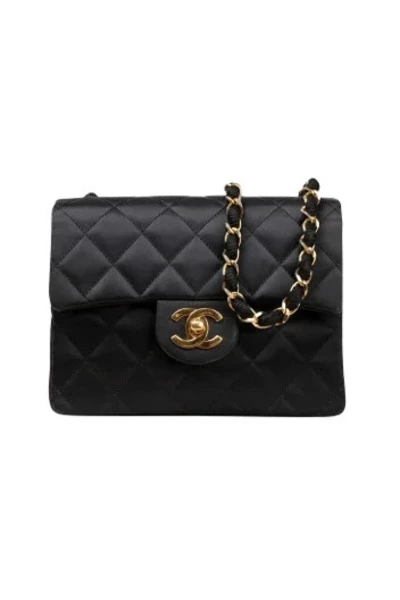 CHANEL Classic Satin Mini Square Bag- Gold-tone hardware- Chain-link and leather shoulder strap- Black Satin- CC turn-lock closure at front flap, back pocket and two inside pockets, one of which has a zipperOverall Preloved Condition: Very GoodExterior Conditie: zeer goed. Kleine oppervlakte krassen op hoeken. Interieur Conditie: zeer goed. Reinig met een licht gebruik van gebruik. Hardware: glanzend met lichte oppervlakte krassen. Includes serial tag and authenticity cardMade In FranceSerial number: 09***** (1986 to 1988)Dimensions:Height 13 cmWidth 17 cmDepth 6 cmShoulder strap drop 50 cmPlease note that the majority of our items are vintage and therefore have tales to tell unless anders vermeld. Kijk daarom naar foto`s, beschrijvingen en metingen die u het beste idee geven van het verhaal dat dit item te vertellen heeft.