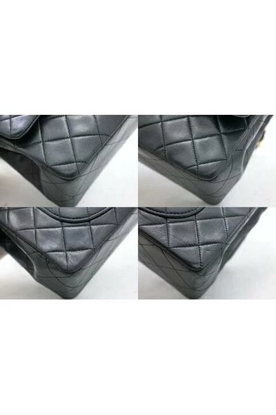 Een authentieke CHANEL 2.55 Classic Double Flap 9 Chain Shoulder Bag Zwart gemaakt van zwart lamsleer. De kleur is zwart. Het materiaal aan de buitenkant is leer. Het patroon is effen. Dit item is vintage / klassiek. Het jaar van fabricage zou 1989-1991 zijn .Condities en beoordelingenBuitenmateriaal: LamsleerKleur: ZwartSluiting: DraaislotHardware en ketting:Goud-ToneMade in FranceSerile sticker: AttachedSerial : VERBORGEN OM VEILIGHEIDSREDEN Wordt geleverd met: GeenAlgemeen: 8 van 10 – De buitenkant is in uitstekende staat met slechts minimale gebruikssporen. Kleine krasjes op de achterkant. De binnenkant is ook uitstekend en zeer schoon met lichte krassen. Geen plakkerigheid of peeling. Alle kettingen en hardware zijn glanzend en uitstekend. Sterk aanbevolen! Afmetingen ongeveer: H5.5 x B9 x D2.4 (H14 x B23 x D6,2 cm) Ca. bandverlies bij dubbele ketting: 24 cm Geschatte bandverlies bij enkele ketting: 43,5 cm Over geur: Schimmel: NEE / Parfum: NEE / Sigaret: NEE verschillen per persoon. Gelieve af te zien van de aankoop als u gevoelig bent voor geur.) De etalagepop kan kleiner zijn dan u. Ze draagt kleding in maat US 6. De kleding, mannequin en iPhone zijn niet inbegrepen. We hebben een veiligheidslabel op het item geplakt om ervoor te zorgen dat het item niet wordt gedragen na verzending of dat het niet wordt vervangen door een andere tas. We accepteren de retourzending niet als u onze tag van het artikel verwijdert. 100% authentiek gegarandeerd of geld terug.SKU:h01