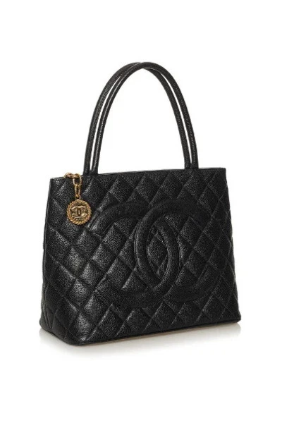 Deze Chanel CC Caviar Medallion Tote Tote -tas heeft een zwarte kaviaar lederen lichaam in grootte W29cm x H24cm x D14cm x 15 cm voor F in een staat. Goed, maar gebruikt. Een goed maar gebruikt item is gedragen en mogelijk gewassen, maar zal in goede staat zijn en goed worden verzorgd. Het item zal zichtbare slijtage hebben, maar de defecten zullen gering zijn. Deze moeten op foto`s worden genoemd en zichtbaar.