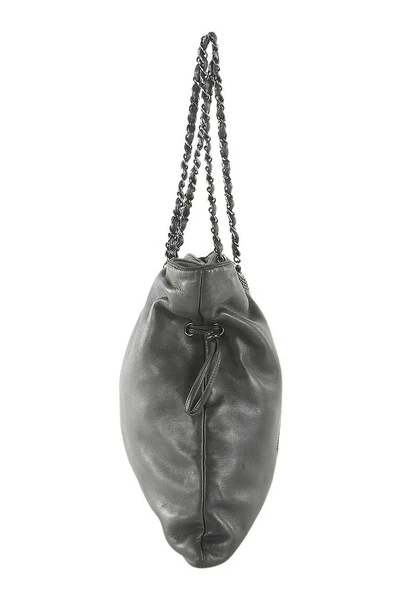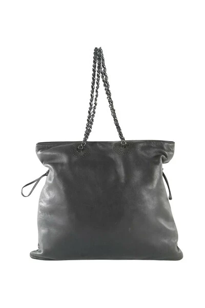 Deze Chanel -tas is gemaakt van zwart kalfsleer leer. De tas beschikt over dubbele verweven ketting/stofschouderhandgrepen met cirkelvormige studdetail aan het einde, bezaaid CC -in elkaar grijpende logo aan de voorkant, open bovenkant beveiligd met snapknopsluiting die opent naar een grijs gestripte stof, een zipzak, twee patchzakken en pistool -Metal Tone Hardware. De tas is in goede staat, maar de lederen show schuifelen en krassen overal, vooral aan de achterkant, de onderste hoeken zijn geschud, er zijn kleine witte vlekken aan de voorkant. Het interieur heeft een onmerkbare vlek. Productcode: 12368032. Chanel Chanel Black Leather Vintage CC Studded Shopping Tote Bag Kleur: Zwart Materiaal: Leer | Kalfsleer Leer Conditie: Goede maat: One-size teken van slijtage: No SKU: 158136 / RWB-97 / RWB-97 Afmetingen: Lengte: 470 mm, Breedte: 20 mm, Hoogte: 410 mm Product-ID: 158136 Oorspronkelijke prijs: EUR 2934