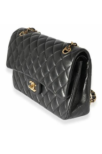 Een tijdloze klassieker die nooit uit de mode raakt, de flap tas van chanel dateert uit 1955 en heeft een aantal updates gezien. het ontwerp was revolutionair voor zijn tijd, en gaf zijn dragers de vrijheid om hun dagelijkse must-haves mee te nemen zonder de omslachtige aard van een grotere tas. de tas heeft de klassieke leer-geweven ketting-schakel schouderband voor een onderscheidende esthetiek.Maat: mediumafmetingen: 10,0 x 7,0 x 2,5bandlengte: 10-17exterieurmateriaal: lamsleerInclusief: doostofzak;onderhoudsboekje;viltbeschermer;doekcirca: 2018gemaakt in: frankrijkku: 125532 size: mediumcirca: 2018 condition: very goodexterior material (specific): lambskin includes: box;dustbag;care booklet;felt protector;clothexterior color: black strap length: 10-17made in: france dimensions: 10 x 7 x 2,5 buitenmateriaal: leer sku: 125532 Chanel Black Quilted Lambskin Medium Classic Double Flap Bag Kleur: zwart Materiaal: Lamsleer Conditie: zeer goed Maat: One Size Tekenen van slijtage: Geen SKU: 195224 / 5152371 Afmetingen: Lengte: 483 mm, Breedte: 127 mm, Hoogte: 127 mm