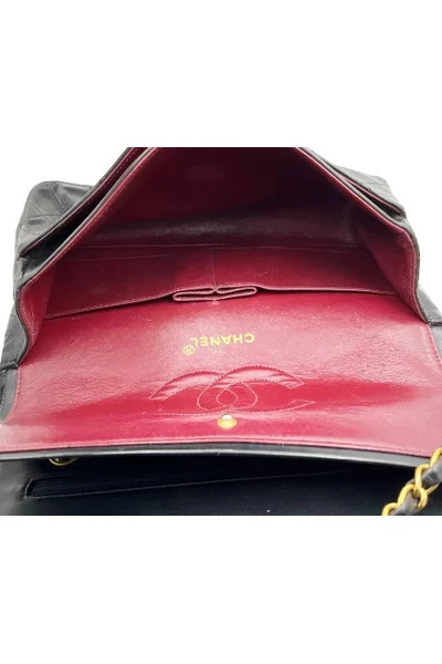 Chanel Vintage klassieke tijdloze dubbele flap lamsvacht 10″ schoudertas 261xxxx Gemaakt in Frankrijk Wordt geleverd met trolley nummerkaart en stofzak 24-karaats vergulde hardware