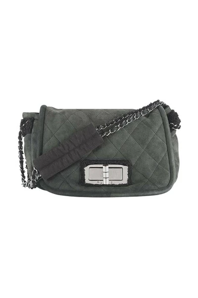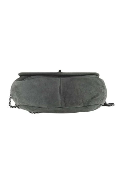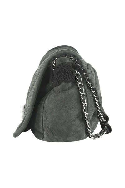 Deze Chanel -tas is gemaakt van zwarte shearling en gewatteerd nubuckleer. De tas heeft een enkele kettingverbindingsschouderriem met greiding bont, voorklep met CC Turn-Lock die opent naar een zwart shearling gevoerd compartiment met één spleetzak en pistool-metaal toonhardware. De tas is in goede staat, maar het leer vertoont tekenen van slijtage aan de hele buitenkant, er zijn enkele vervaagde plekken aan de achterkant en de hardware is bekrast. Het interieur is schoon met kleine tekenen van slijtage. Product: 9981182. Chanel Chanel Zwart gewatteerd Nubuck Shearling Single Flap Bag Kleur: Zwart Materiaal: Leer Conditie: Goede maat: One Grootte Teken van Wear: No SKU: 158154 / RWB-282 / RWB-282 Afmetingen: Lengte: 290 mm, Breedte : 90 mm, hoogte: 230 mm Product -ID: 158154