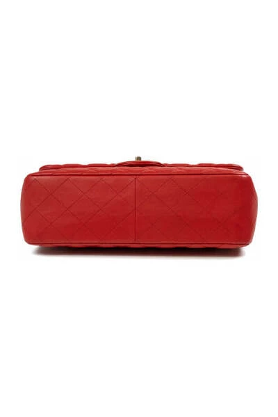 Tijdloze jumbo tas in rood leer. Interieur in rood leer. Gouden metalen beslag. In zeer goede staat: licht beschadigde hoeken, verlies van vergulding op de hardware, leer licht gemarkeerd, kleine kras op de achterkant van de tas Seriecode: 18158344 Afmetingen Breedte: 30 cm, Hoogte: 20 cm, Diepte: 10 cm, Schouderriem: 130 cm Accessoires Geen SKU BR675-205-31