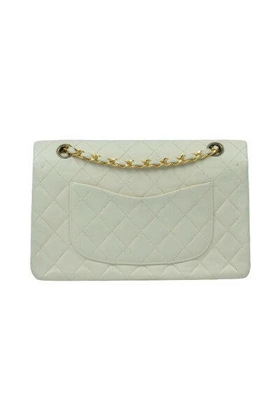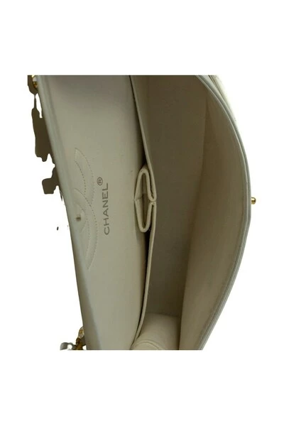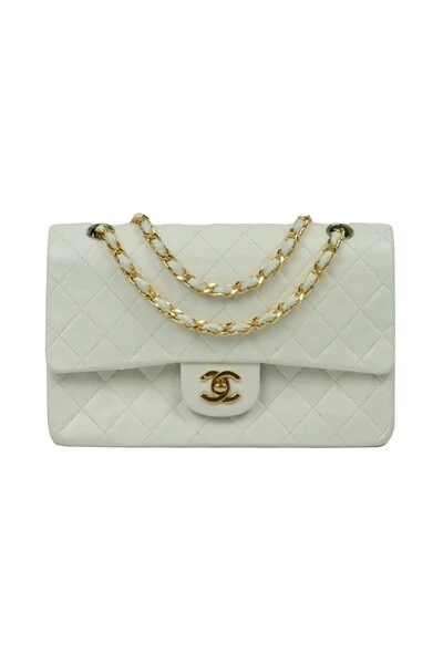 Vintage tijdloze tas in wit leer. Wit lederen interieur. Gouden metalen lift. In goede staat: tas gerestaureerd door een professionele, licht beschadigde hoeken, enigszins gekleurd interieur, licht gemarkeerde lederen series series: 1037927 Afmetingen Breedte: 26 cm, hoogte: 16 cm, diepte: 7 cm, schouderband: 90 cm Accessoires No Sku BR675-207-181