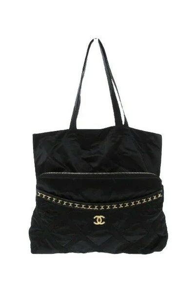 Brand : CHANELCategory : BagsSubCategory : TotesModel : Large Tote Bag / Matelasse / AP2676/B07632/94305Color : BlackMaterial : Nylon, Gross Grain, LeatherAccessories : GuaranteeDesign : Exterior pocket : 2 openInterior pocket : 1 zipper pocketHologram sticker : inside bag2022 Spring Summer Pre-collection /2way/vouwtas/kettingafwerking/goud hardwaregder: dames ssize: Hoogte: 11.7