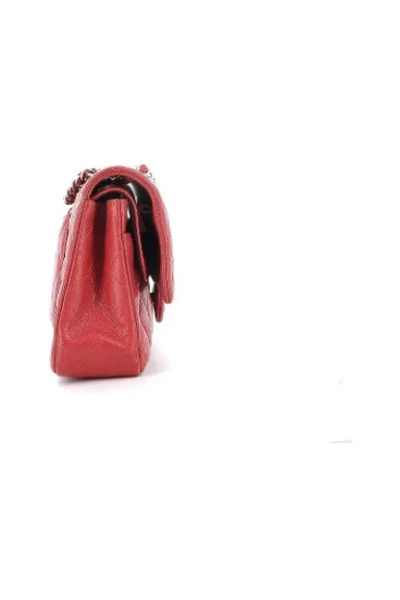 Chanel tas kleine tijdloze modelgrained kalfleersilver metalen sieraden ketting en lederen schouderriem, niet-removeerbaar, verstelbaar voor dubbele slijtage buiten vergulde pocketdouble flap gesloten lederen interieur ritspocket op de fladree binnenste pockets afmeting 23 x 14,5 x 6 cmvery , zonder boxwith authenticiteit kaarten licht gedragen corners
