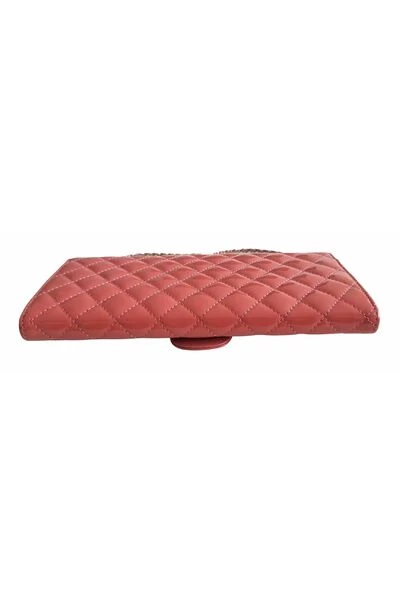 Chanel briljante patentleer Meloen roze oostwestschoudertas Wocwe bieden een elegante dag tot avond lederen oostelijk westelijke schoudertas. De stijl van de tas is een grote portemonnee op ketting. De tas heeft veel compartimenten en heeft een lengte die groot genoeg is voor uw mobiele telefoon. kan worden gedragen als een schoudertas of de ketting binnenin worden gestopt en als een koppeling dragen. Perfect voor een vakantietas! De kleur wordt vermeld als roze, hoewel het meer een meloenschaduw is. Conditie: Zeer goed met matige interieur vouwen op de binnenklep zoals getoond, gemiddeld gebruik voor de riem, licht krassen op hardware. Houd er rekening mee dat er geen witte vlekken op deze tas zijn, eventuele schaduwen of witte vlekken zijn van het licht omdat het het patentleer raakt. Metingen: hoogte 5