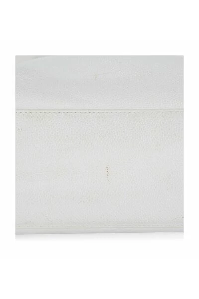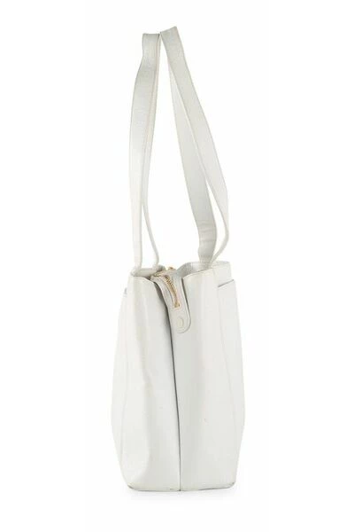 Deze Chanel -tas is gemaakt van wit kaviaar leer. De tas beschikt over dubbele platte lederen handgrepen, Chanel geborduurd aan de voorkant, drie compartimenten: twee open en één middelste compartiment met bovenste ritssluiting en een chanelplaattag bevestigd aan de ritssluiting, twee buitenste slipzakken, witte stof bekleed interieur met twee met twee Zipzakken en goudkleurige hardware. De tas is in goede staat, maar er zijn onverharde vlekken aan de buitenkant, de onderste hoeken zijn geschaafd en de lederen handgrepen worden gekreukt. De interieurcompartimenten hebben enkele make -upvlekken en de hardware heeft haarlijn krassen. Productcode: 4707215. Chanel witte kaviaar lederen draagtas kleur: wit materiaal: leer | Caviar lederen Conditie: Goede maat: One-size teken van slijtage: No SKU: 195118 / RWB-53 / RWB-53 Lengte: Nan MM, Breedte: Nan MM, Hoogte: Nan MM