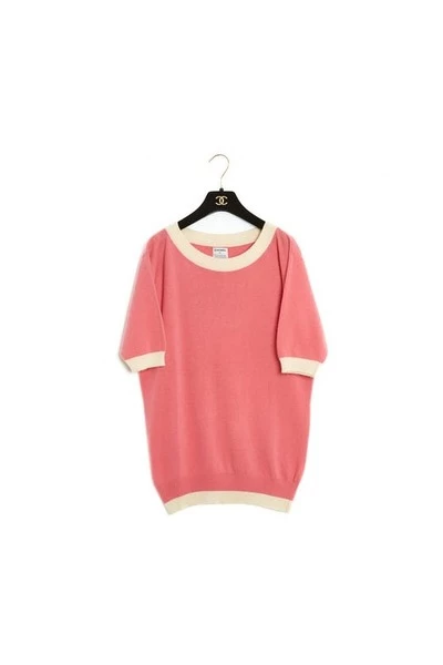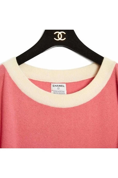 Top Chanel -trui in Cashmere Color Flamingo Pink (een beetje levendiger dan de foto`s in werkelijkheid), volume enigszins oversized, leed met kasjmier ongebleekt aan de kraag bijna boot, op de bodem van de mouwen half kort en de trui bijna tuniek. Geen size label meer, maar de metingen geven een 38/40FR aan: case 44 cm, borst 44 cm, lengte 72 cm, mouwen 30 cm. De bovenste D.A.T.E. uit de vroege jaren 90, het heeft een of 2 micro -vlekken die bijna onzichtbaar zijn, kasjmier is in uitstekende staat, de kleur is trendy en het is verrukkelijk op een kleine denim shorts en een mooi paar blote voeten …