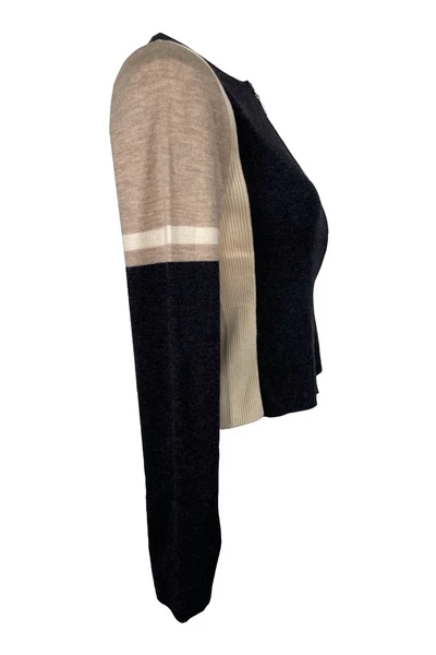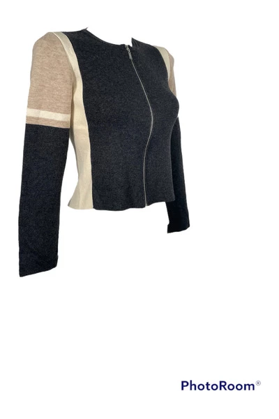 Chanel`s pure elegantie is samengevat in de strakke lijnen van deze trui. De zachte wol met zachte kleuren zal je nooit moe worden, en het slanke silhouet zal je vormen verbeteren. Draag ze met zwarte lederen broek, om een ​​unieke, elegante en universele uitstraling te hebben. Voorwaarden Uitstekende staat 10/10misuresspalle 34 cm borst 39 cm lengte achter 59 cmlungness mouwen 49 cm